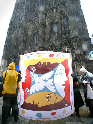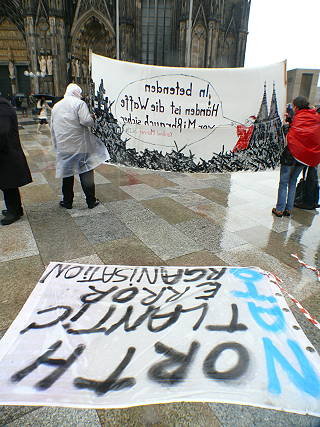 | Köln, 13.1.2011 - Soldatengottesdienst mit Joachim Kardinal Meisner, Karl-Theodor Freiherr von und zu Guttenberg und dem Protest dagegen |