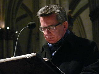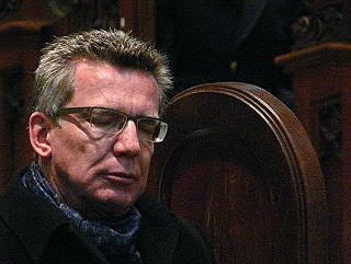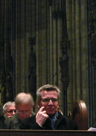 ![]() 16 Verteidigungsminister Thomas de Maizière betritt den Altarraum und spricht: "Brüder, sorgt Euch um nichts..." |