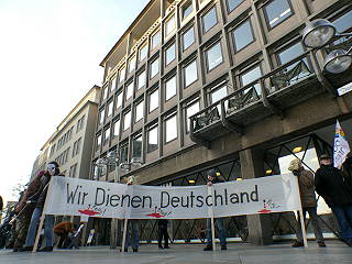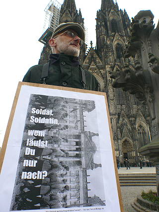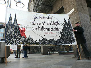 | Köln, 12.1.2012 - Soldatengottesdienst mit Joachim Kardinal Meisner, Thomas de Maizière und dem Protest dagegen |