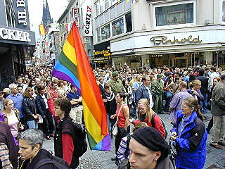 | Köln, 6.7.2002 - Christopher Street Day (1) Protest gegen den (abgesagten) Neonazi- Aufmarsch gegen den CSD |