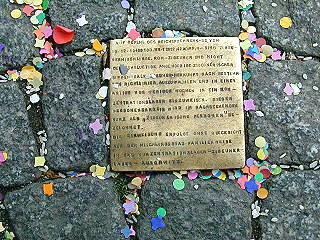 ![]() 27 Stolperstein (von Gunter Demnig) vor dem Rathaus zur Erinnerung an die Verfolgten des Nazi-Regimes |
