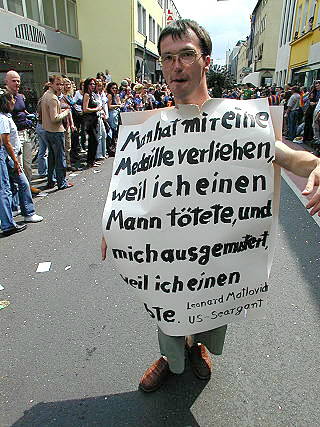 ![]() 21 "Man hatte mir eine Medaille verliehen, weil ich einen Mann tötete, und mich ausgemustert, weil ich einen liebte." Leonard Matlovich, US-Sergant |