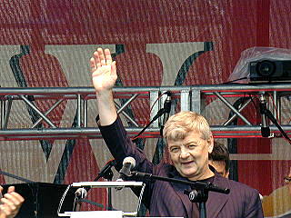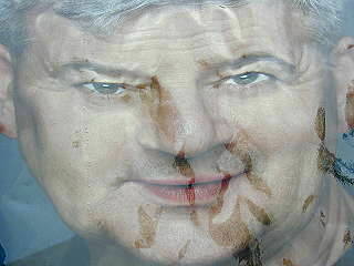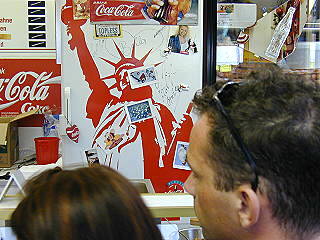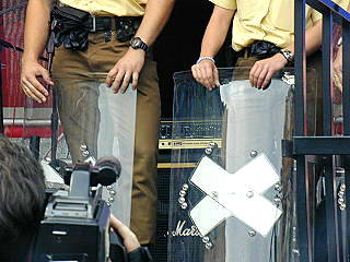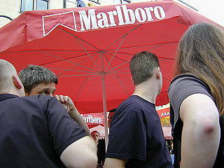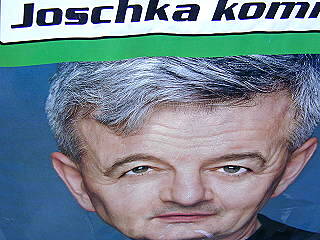 ![]() 14 Joseph Fischer - am Bretterzaun am Mega-Tower West - mit Bier übergossen |
