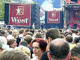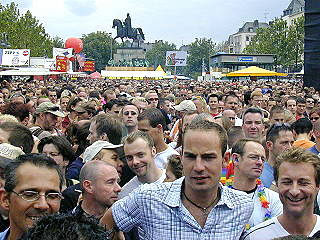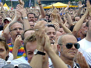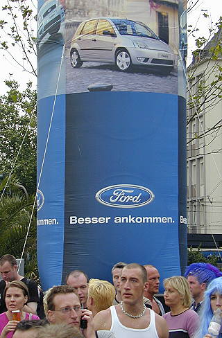 | Köln, 7.7.2002 - Christopher Street Day (4) über Joseph Fischer und einige andere Aspekte am Mega-Tower West |
