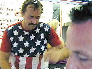 ![]() 12 Joseph Fischer - am Bretterzaun am Mega-Tower West - mit Bier übergossen |